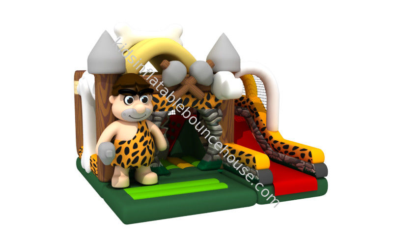 Nieuwe commerciële opblaasbare stenen tijd springende springkasteel bed primitieve man en bot thema springhuis glijcombo