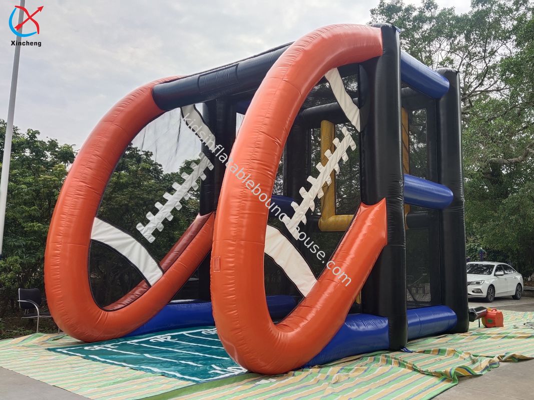 1.Met kleurrijke doelpalen, stuiterende obstakels en meerdere scorezones, test dit innovatieve spel nauwkeurigheid en behendigheid in een speelse, energieke omgeving. Het zachte opblaasbare ontwerp zorgt voor veiligheid, terwijl het levendige rugbythema de competitieve geest stimuleert. Ideaal voor sportclubs, gemeenschapsfeesten of verjaardagsfeestjes, deze unieke attractie garandeert lachen, beweging en rugby-geïnspireerd plezier voor alle leeftijden!