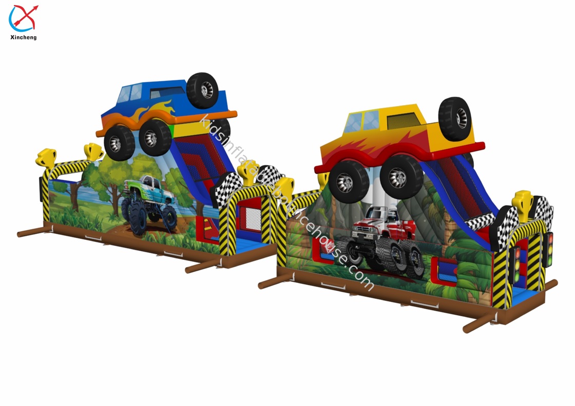 Fabriek Hindernisbaan Bounce House Auto Race Opblaasbare Hindernisbaan Met Glijbaan