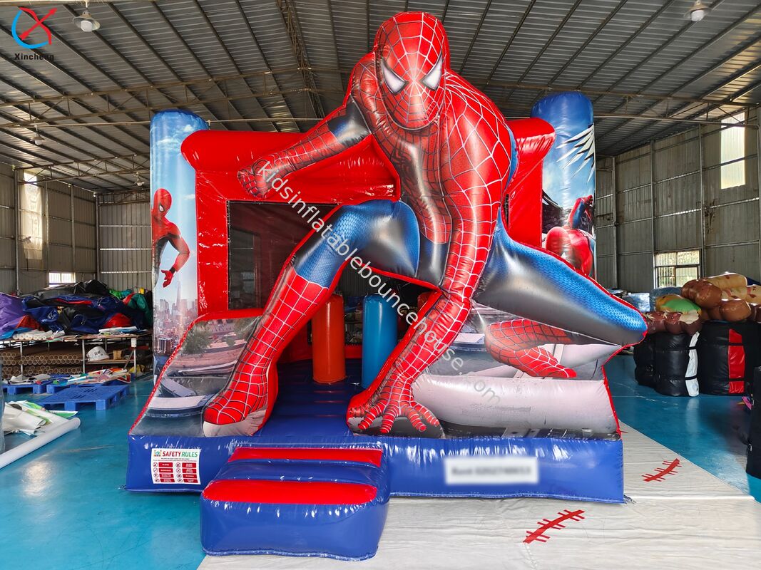 Dit commerciële Spider-Man thema opblaasbare springkasteel heeft een levendig rood heldenontwerp, speciaal ontworpen voor kinderentertainment en recreatief gebruik.