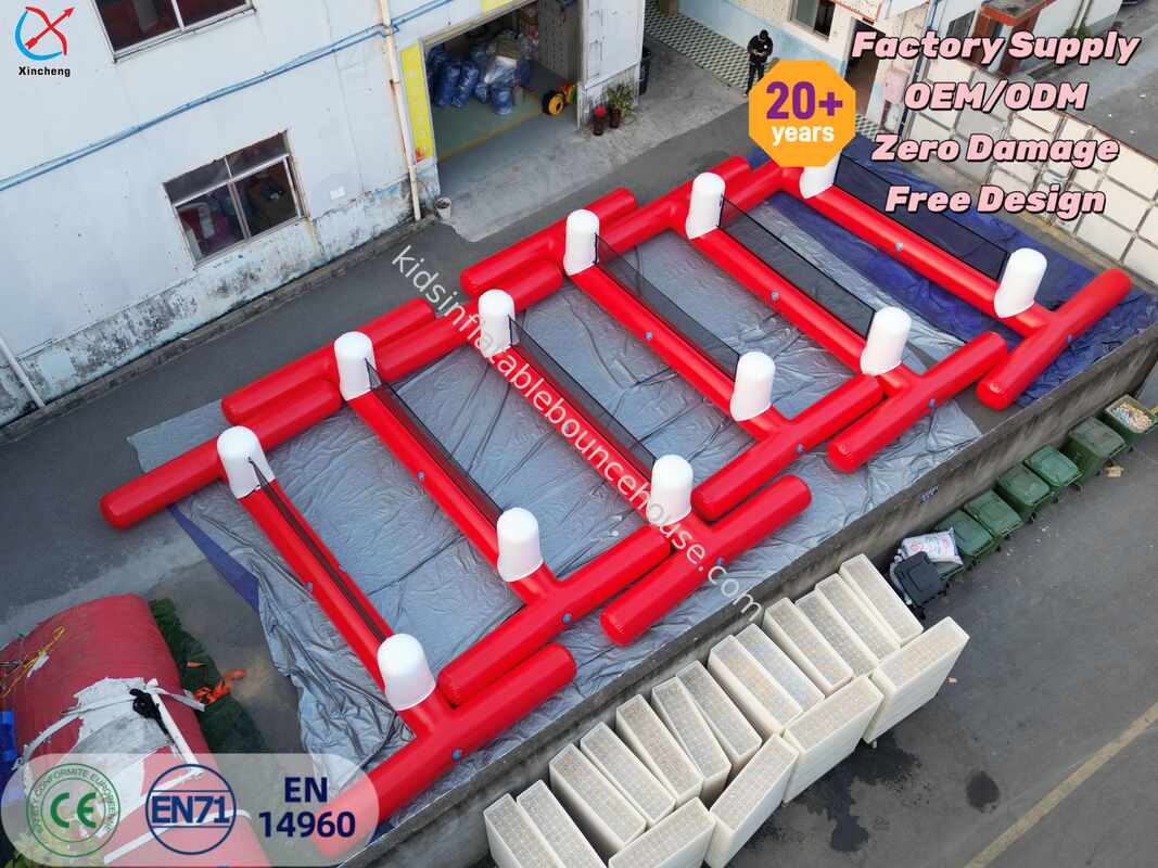 Dit levensgrote opblaasbare voetbalveld heeft een duurzaam rood-wit ontwerp, waardoor een gigantische, interactieve versie van het klassieke tafelspel wordt gecreëerd.,Het programma biedt spelers de mogelijkheid om de "foosbalmensen" te worden voor een unieke energieke en competitieve ervaring.