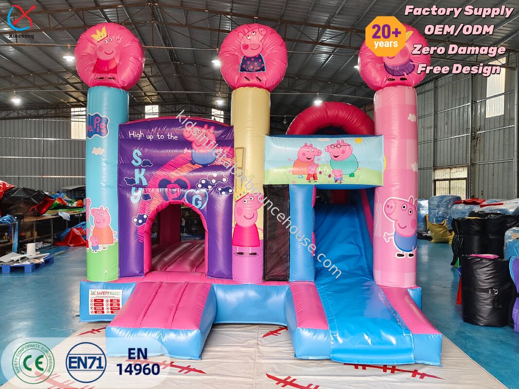 Dit spannende opblaasbare springkasteel met Peppa Pig thema is voorzien van levendige graphics en een leuke glijbaan, wat zorgt voor een meeslepende speelervaring voor kinderen. De robuuste constructie garandeert veilig spring- en glijplezier op feesten en evenementen.