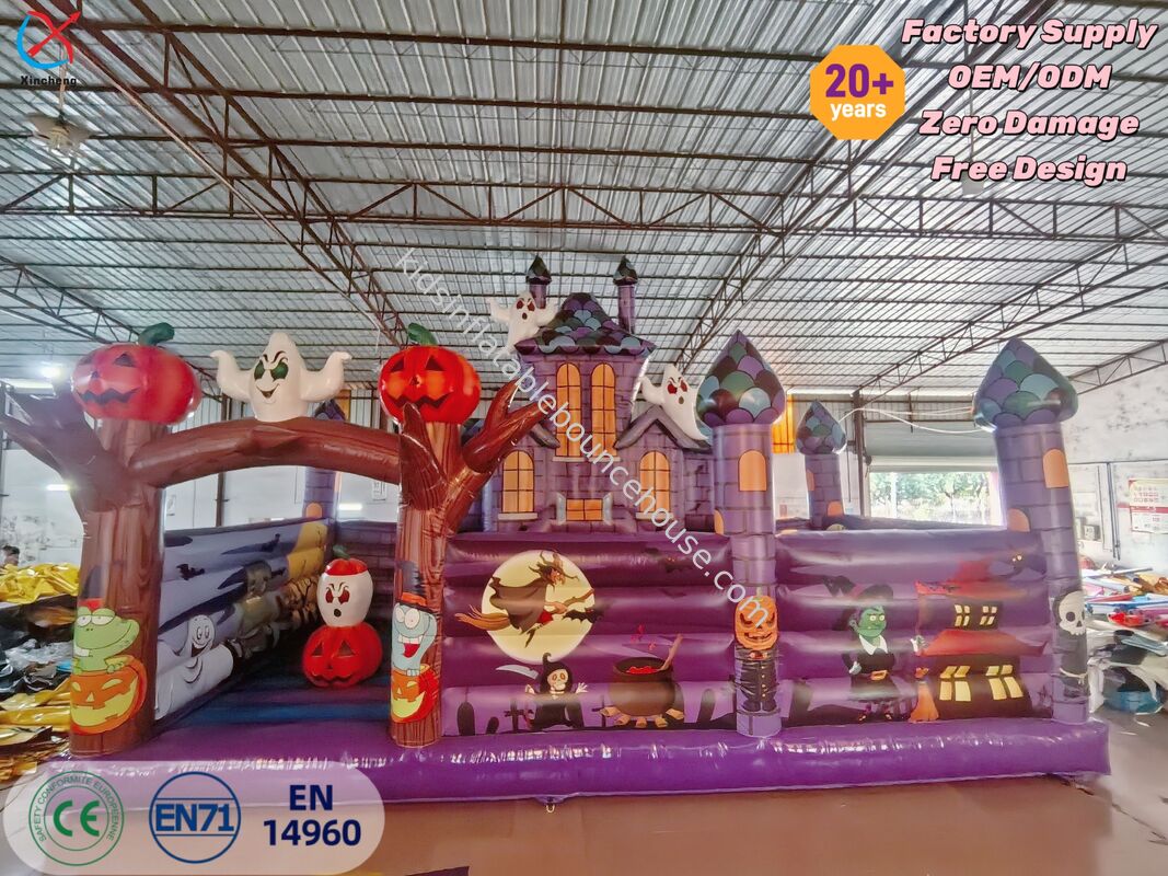 Commerciële Vrolijk Halloween Pompoen Grote Opblaasbare Springkasteel Glijbaan Pretstad