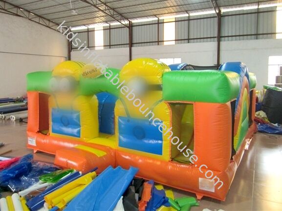 Dit levendige gele opblaasbare springkasteel is voorzien van een ingebouwde glijbaan, wat zorgt voor spannend entertainment voor buitenevenementen en feesten. De commerciële constructie garandeert veilig spring- en glijplezier voor kinderen van alle leeftijden.